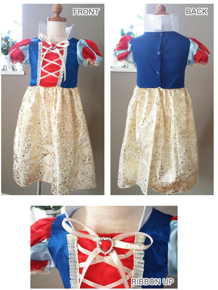 とっても上品なフローラル柄スカートの白雪姫のドレスです 白雪姫っぽい襟元がとても可愛らしく ゴールドのフローラル柄のスカートが華やかさを増してくれます。