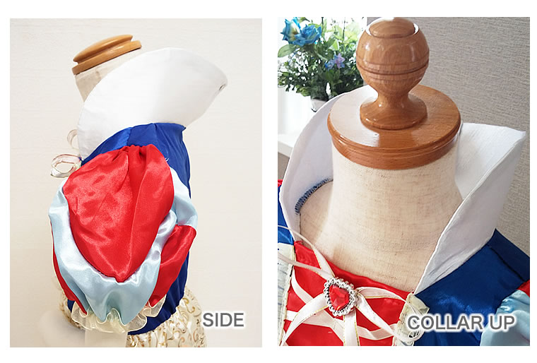 白雪姫っぽい襟元もかわいい!質感もハロウィンコスチュームとしては縫製がわりとよく、品のよさがります。