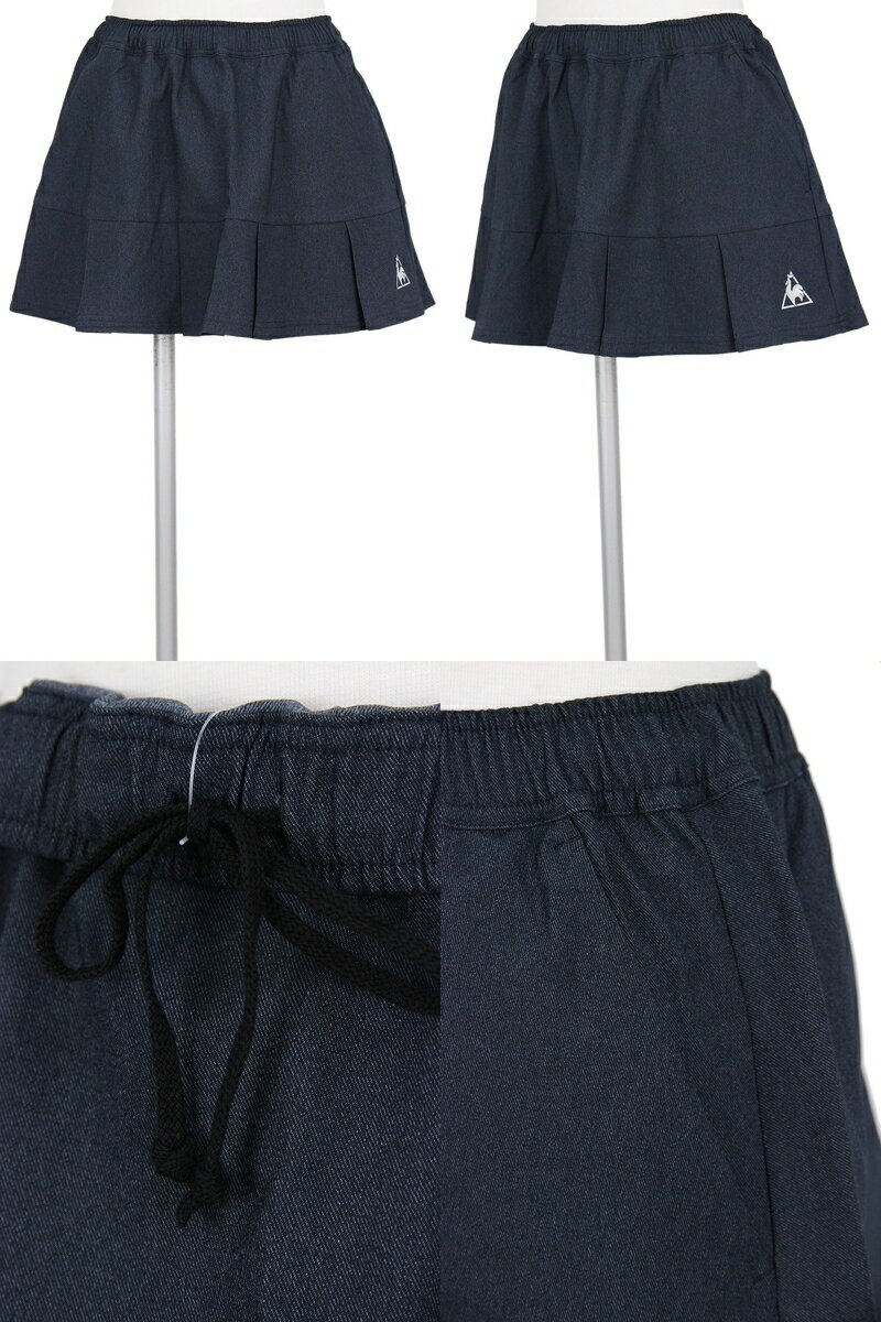 【30%OFF SALE】ルコックスポルティフ テニス ルコック le coq sportif レディース スカート スコート ウエスト伸縮 撥水 ストレッチ プリーツ切替 デニム風 ロゴプリント 2019 春夏 新作 ゴルフウェア
